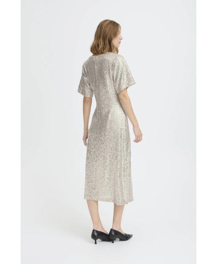 Платье-макси ICHI сочетает в себе длину до пола и праздничный образ для особых случаев. Ключевые особенности: Серый | Матовый миндальный | Длина макси | Праздничный силуэт