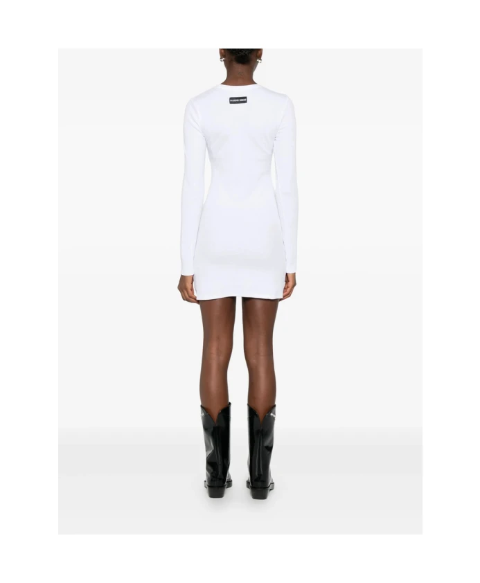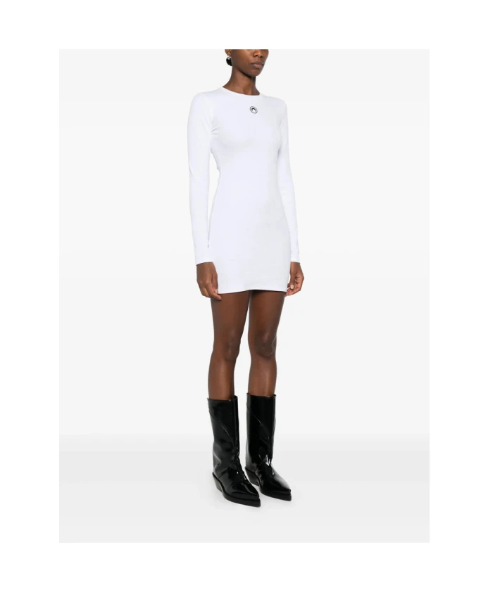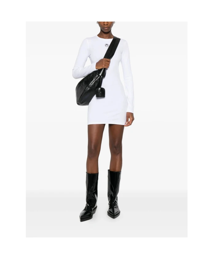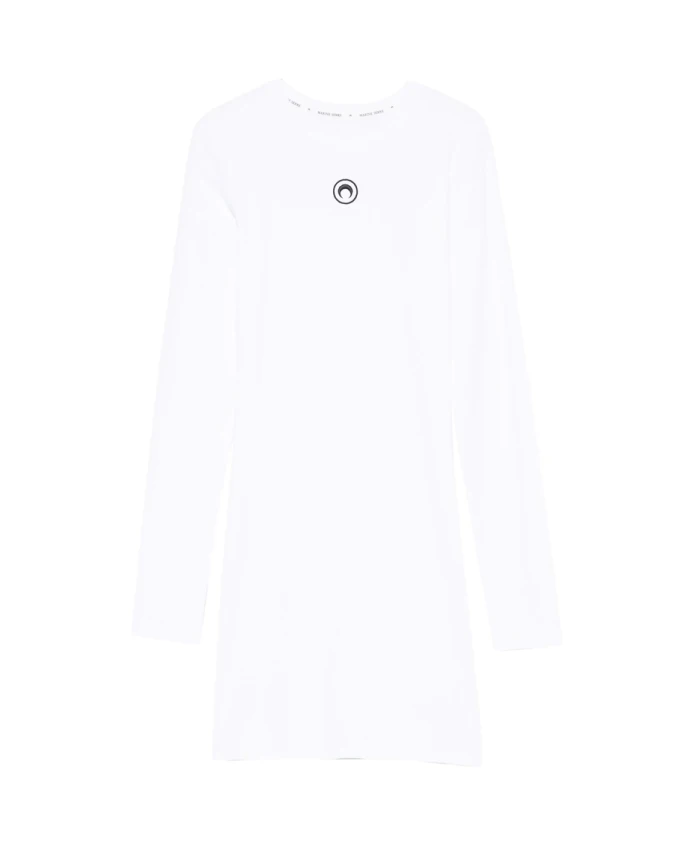 Обновите свой гардероб этим коротким белым хлопковым платьем от Marine Serre. С длинными рукавами и круглым вырезом, это платье идеально подойдет современной женщине.