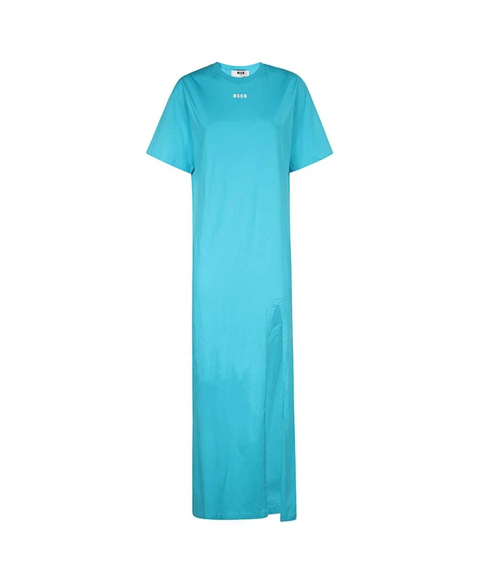 Длинное хлопковое платье с логотипом Msgm, синий
