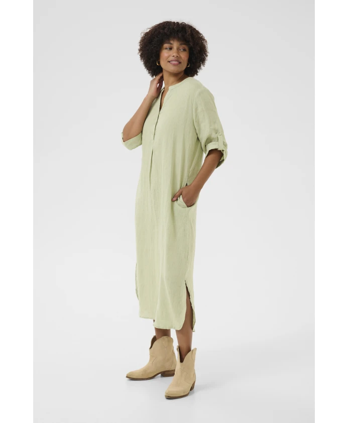 Льняное платье-кафтан зеленого цвета Cream, зеленый