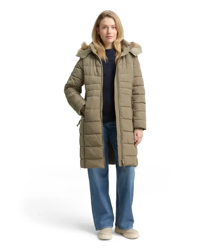 Пуховик со съемным капюшоном Tom Tailor, зеленый