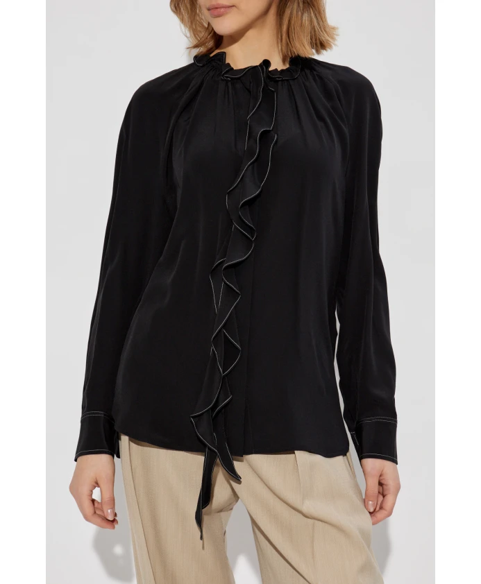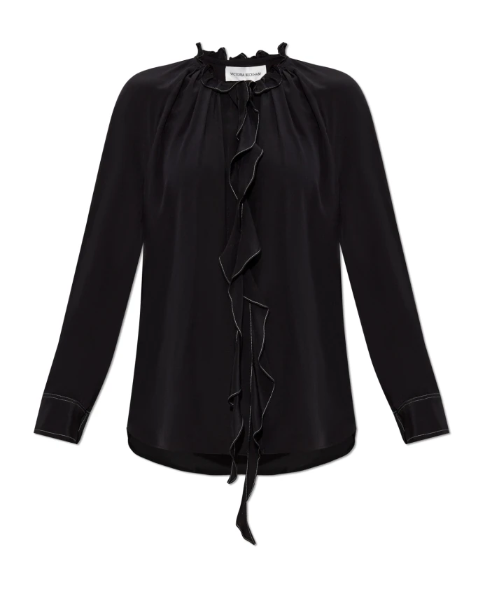 Шелковая рубашка с оборками Victoria Beckham, черный