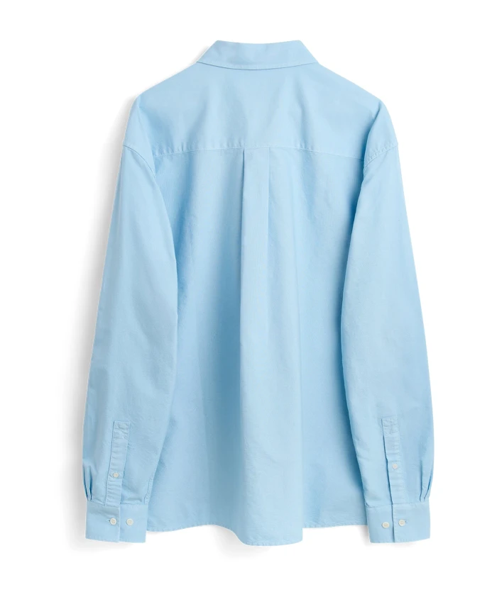 VIT - это свободная рубашка с длинными рукавами и прямым низом. Она имеет застежку на пуговицах спереди и классический воротник на пуговицах. Пуговицы из корозо украшают переднюю планку и манжеты. Ткань - хлопчатобумажная ткань оксфордского переплетения светло-голубого, белого и темно-синего цвета. Рубашка имеет свободный крой, классический воротник на пуговицах и соответствует размеру. Изготовлена из 100% сертифицированного органического хлопка. Ткань поставляется из Португалии. Это изделие произведено в Португалии. Машинная стирка при 30°C. Органический хлопок выращивается с использованием методов, оказывающих меньшее воздействие на окружающую среду, чем обычный хлопок. Производство восстанавливает и поддерживает плодородие почвы без использования токсичных и стойких пестицидов и удобрений. Произведено компанией Soulland, Forhåbningsholms Allà 2C, 1904, Frederiksberg C, Дания.