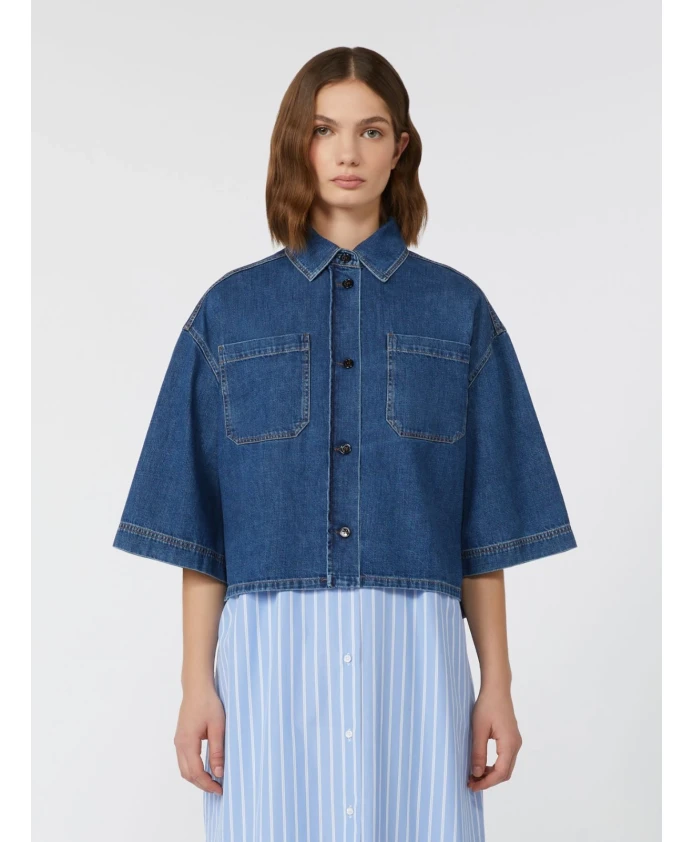 Рубашка Weekend Max Mara Enza от Weekend Max Mara - это короткая рубашка свободного кроя, сочетающая современные пропорции с практичными деталями. Укороченный силуэт и застежка на пуговицах делают ее идеальной для многослойных образов или изысканных повседневных вариантов. Основные характеристики: Синий | Полиамид | Видимая застежка на пуговицы спереди | Накладные нагрудные карманы | Укороченный низ | Свободный силуэт | Спущенные рукава 3/4 | Прошитая кокетка с обратной складкой сзади | Квадратные боковые разрезы | Размеры и посадка: Свободный крой | Укороченный низ | Состав ткани и уход: 88% полиамид | 12% эластан | Машинная стирка в холодной воде в щадящем режиме; не отбеливать; не сушить в сушильной машине; сушить в тени; гладить при низкой температуре; профессиональная химчистка (перхлорэтилен, щадящий режим).
