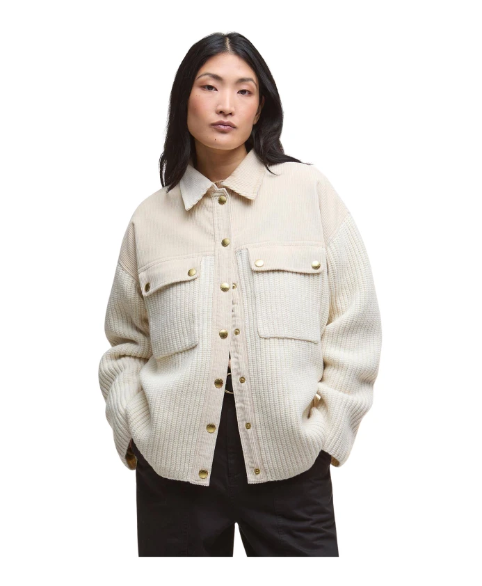 Вязаная рубашка-куртка Barbour Maxine сочетает в себе структуру обычной рубашки-куртки и тепло трикотажа. Она украшена вельветовыми деталями и ребристой вязкой в стиле «рыбацкая резинка» для повседневной носки в прохладную погоду. Ключевые особенности: Бежевый | Смесь шерсти | Теплоизолирующая | Застежка на кнопки спереди | Нагрудные карманы с клапанами на кнопках | Фирменная фурнитура на клапанах карманов | Вельветовые детали на груди и плечах | Ребристая вязка в стиле «рыбацкая резинка» | Ребристый круглый вырез, нижний край и манжеты | Фирменная кожаная нашивка и заклепки | Размеры и посадка: Длина по спинке: 70 см | Свободный крой | Состав и уход: Верхний слой: 80% шерсть, 20% полиамид | Отделка: 100% кожа (коровья кожа) | Вторичная ткань: 100% хлопок | Подкладка: 100% хлопок | Ручная стирка. Стирать отдельно.