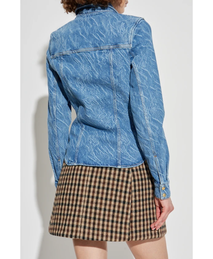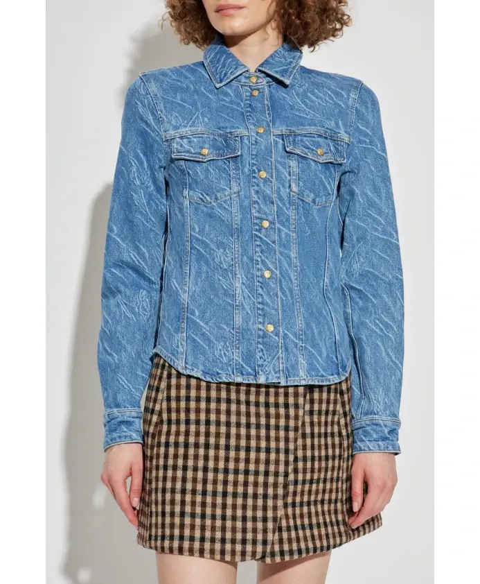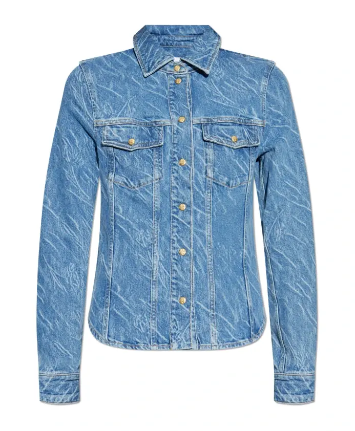 Джинсовая рубашка Ganni - это новаторский вариант классической модели, дополненный мраморным эффектом кислотной стирки и изящными золотыми пуговицами с логотипом. Классический воротник и манжеты на пуговицах делают ее универсальной вещью, подходящей как для многослойных образов, так и для самостоятельного ношения. Ключевые особенности: Синий | Джинсовая ткань | Застежка на пуговицы | Манжеты на пуговицах | Два накладных нагрудных кармана с клапанами | Золотые пуговицы с тисненым логотипом | Традиционный воротник | Длинные рукава | Мраморный/кислотный эффект с видимыми белыми потертостями | Контрастная строчка | Размеры и посадка: Рост модели: 177 см | Обхват груди: 83 см | Обхват талии: 61 см | Обхват бедер: 89 см | Модель носит размер: 36 | Слегка приталенный крой
