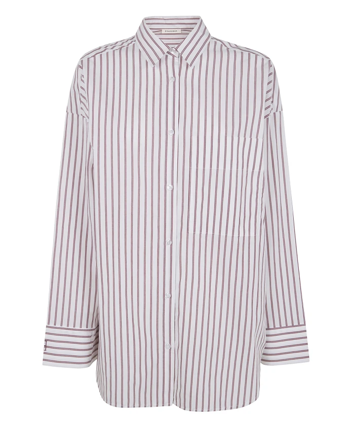 Рубашка Derris Top Shirt от By Malene Birger - это полосатая хлопковая рубашка на пуговицах с полной застежкой, скроенная в стиле оверсайз. Ее легко носить поверх узких брюк или расстегнутой поверх джинсов для создания расслабленного многослойного образа. Ключевые особенности: Фиолетовый | Полоски цвета каберне | Хлопок | Ткань средней плотности | Не тянется | Застежка на пуговицах | Накладной нагрудный карман | Манжеты на пуговицах | Заостренный воротник | Закругленный низ | Полосатый узор | Размеры и посадка: Свободный крой; выберите свой обычный размер для желаемого оверсайз-образа или на размер меньше для более классического кроя. | Состав ткани и уход: 100% хлопок | Машинная стирка при 30°C.