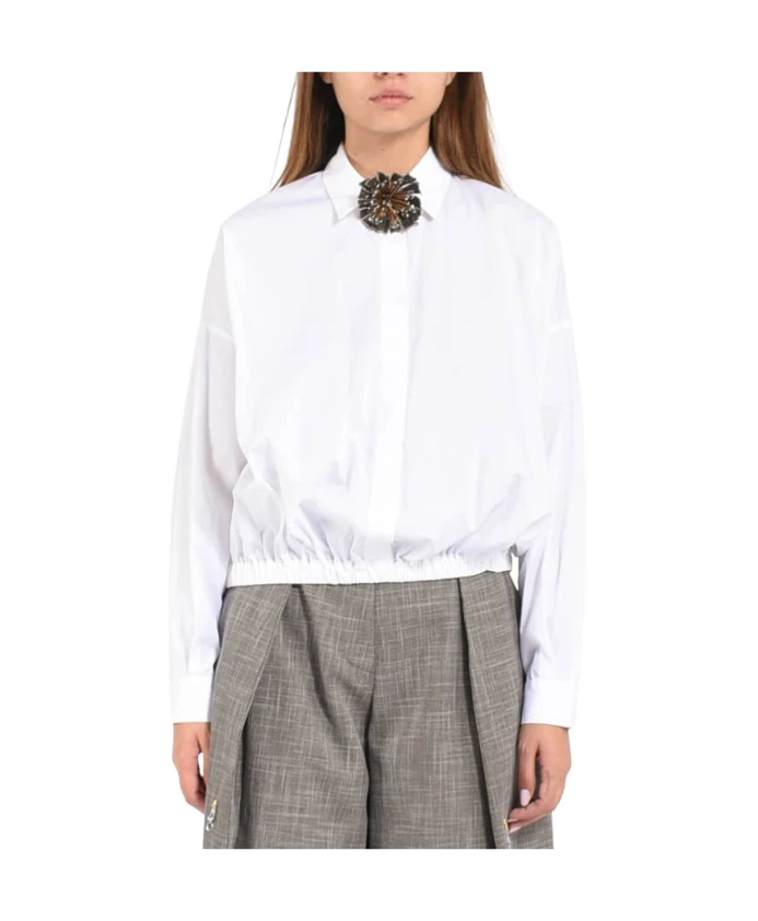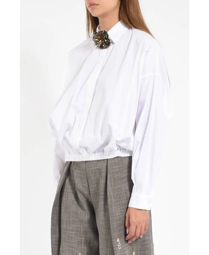 Рубашка из хлопкового поплина от Simona Corsellini сочетает в себе плотный хлопковый поплин, классический воротник и съемную декоративную брошь, создавая изысканный и универсальный образ, подходящий как для офиса, так и для вечерних мероприятий. Ключевые особенности: Белый | Хлопковый поплин | Съемная декоративная брошь | Скрытая застежка на пуговицы | Эластичный пояс | Классический воротник | Скрытая планка на пуговицах | Текстура поплина | Размеры и посадка: Рост модели: 175 см; Размер на модели: 40 IT | Состав и уход: 100% хлопок | Машинная стирка в холодной воде, деликатный режим. Не отбеливать. Гладить при средней температуре. Сушить в сушилке при низкой температуре или на воздухе.