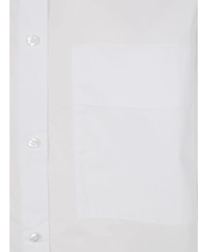 Рубашка By Malene Birger Derris Top Shirt переосмысливает классический стиль рубашки на пуговицах, предлагая свободный, объемный крой и строгий пошив. Острый воротник и накладной передний карман делают ее универсальной вещью, которую можно носить как в качестве нижнего слоя, так и заправленной в классические брюки. Основные характеристики: Чисто белый цвет | Хлопок | Ткань средней плотности, не тянется | Застежка на пуговицы спереди | Накладной нагрудный карман | Манжеты на пуговицах | Складка на спине | Заостренный воротник | Спущенные плечи | Закругленный низ | Длинные рукава | Асимметричный низ с боковыми разрезами | Размер и посадка: Свободный крой | Состав и уход: 100% хлопок