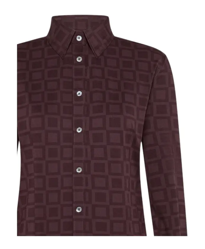 Рубашка RRD Dori сочетает в себе геометрический принт в стиле 1960-х годов и эластичную ткань Oxford, создавая элегантный и комфортный образ. Идеально подходит для деловых встреч, путешествий и стиля smart-casual. Ключевые особенности: Красный | Бордовый | Полиамид | Эластичная ткань | Легкий уход | Не мнется | Мягкая, гладкая на ощупь | Застежка на пуговицы на передней планке и манжетах | Геометрический принт в стиле 1960-х годов | Детали из перламутровых пуговиц | Классический воротник и длинные рукава | Размеры и посадка: Мужской крой с женственной линией талии | Состав и уход: 86% полиамид | 14% эластан | Легкий уход; не мнется.