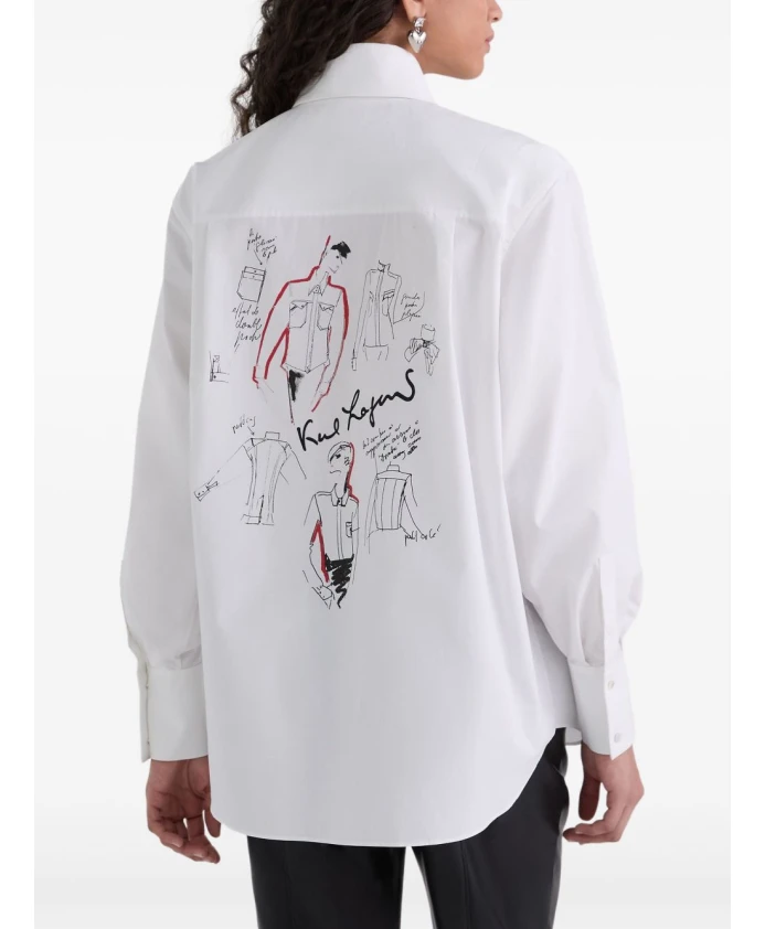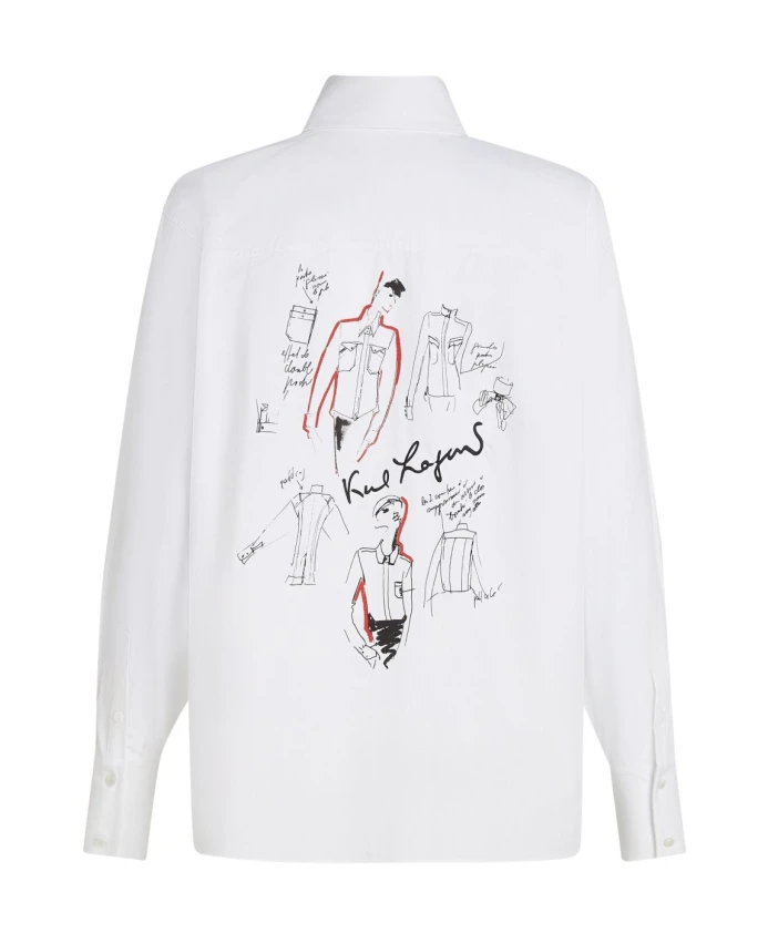 Рубашка из поплина из серии Karl Lagerfeld - это обновленная версия классической рубашки на пуговицах с архивными эскизами, напечатанными на груди и спине. Идеально подходит для создания элегантных повседневных образов. Ключевые особенности: Белый | Хлопок | Скрытая застежка на пуговицах спереди | Манжеты на пуговицах | Фирменные пуговицы из перламутра | Высокий воротник-стойка | Принты на груди и спине | Закругленный низ | Длинные рукава | Состав ткани и уход: 100% хлопок | Машинная стирка в холодной воде, деликатный режим. Сушка в сушилке при низкой температуре или сушка на воздухе. При необходимости прогладить теплым утюгом.