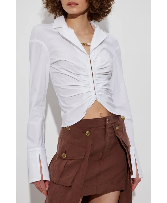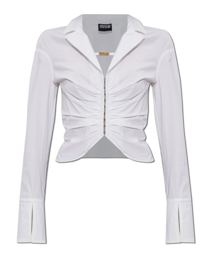 Хлопковая рубашка со складками Versace Jeans Couture, белый