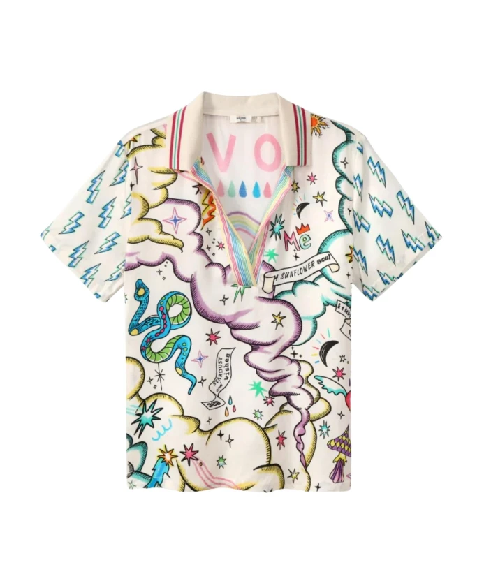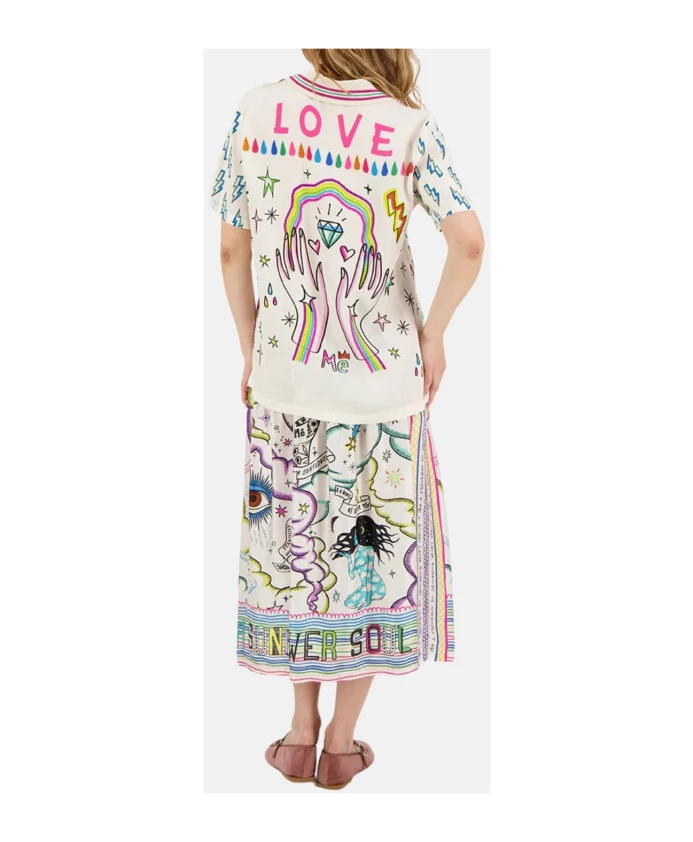 Поло Me369 Korin Enlightenment - это свитер с короткими рукавами и V-образным вырезом, украшенный фирменным принтом Enlightenment, контрастными вставками с принтом и словом «LOVE» на спине. Он создан как легкая, эффектная вещь для повседневных или нарядных образов. Ключевые особенности: Многоцветный | Вискоза | Модель без застежек | V-образный вырез | Короткие рукава | Принт Enlightenment по всей поверхности | Контрастные вставки с принтом на воротнике, рукавах, передней и задней части | Слово «LOVE» на спине | Размер и посадка: Соответствует размеру (обычный крой) | Состав и уход: 100% вискоза