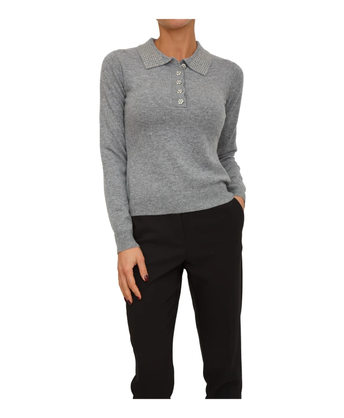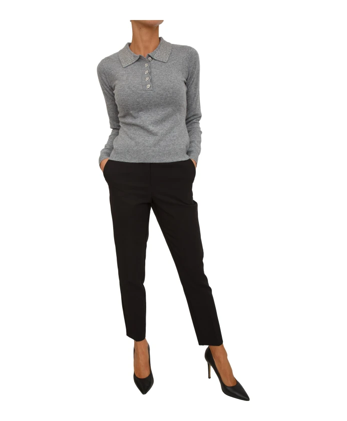 Вязаная рубашка-поло Fracomina - это трикотажная модель стандартного кроя из смеси шерсти и кашемира, созданная для элегантного повседневного образа. Она имеет классический воротник-поло с отделкой стразами и застежку на пуговицах с декоративной пуговицей. Ключевые особенности: Серый | Шерсть | Центральная застежка на пуговицах с декоративной пуговицей | Длинные рукава | Круглый вырез с отделкой стразами | Классический воротник-поло | Декоративные пуговицы по центру | Ребристые манжеты и нижний край | Размеры и крой: Стандартный крой | Состав и уход: Шерсть 90%, Кашемир 10%