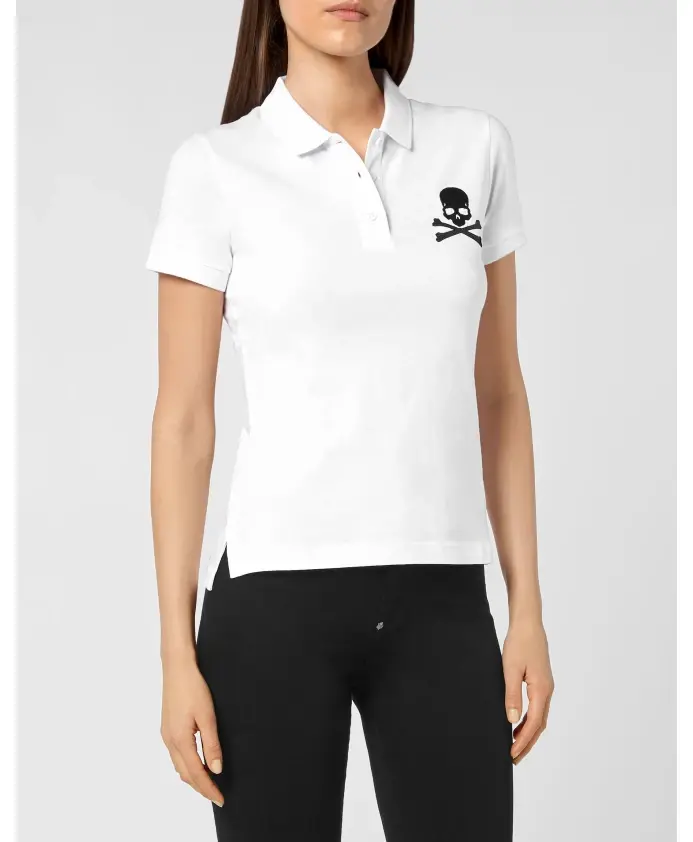 Поло Philipp Plein SS - это поло из хлопкового трикотажа, сочетающее в себе повседневный комфорт и фирменный логотип Skull & Bones. Изысканные детали, такие как ребристый трикотажный воротник и асимметричный низ, придают ему утонченный и дерзкий вид. Основные характеристики: Белый | Хлопковый трикотаж | Застежка на пуговицы на воротнике | Двойная строчка | Вышивка Skull & Bones на левой стороне груди | Ребристый трикотажный воротник | Ребристые манжеты | Асимметричный низ с боковыми разрезами | Двойная строчка | Состав и уход: 100% хлопок