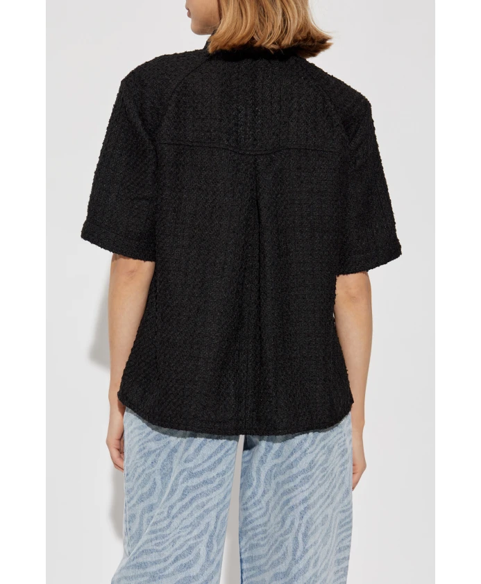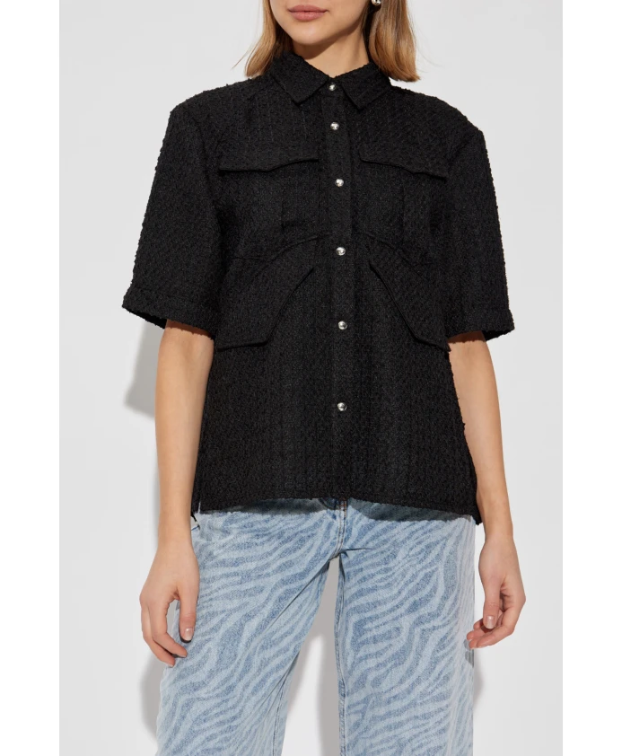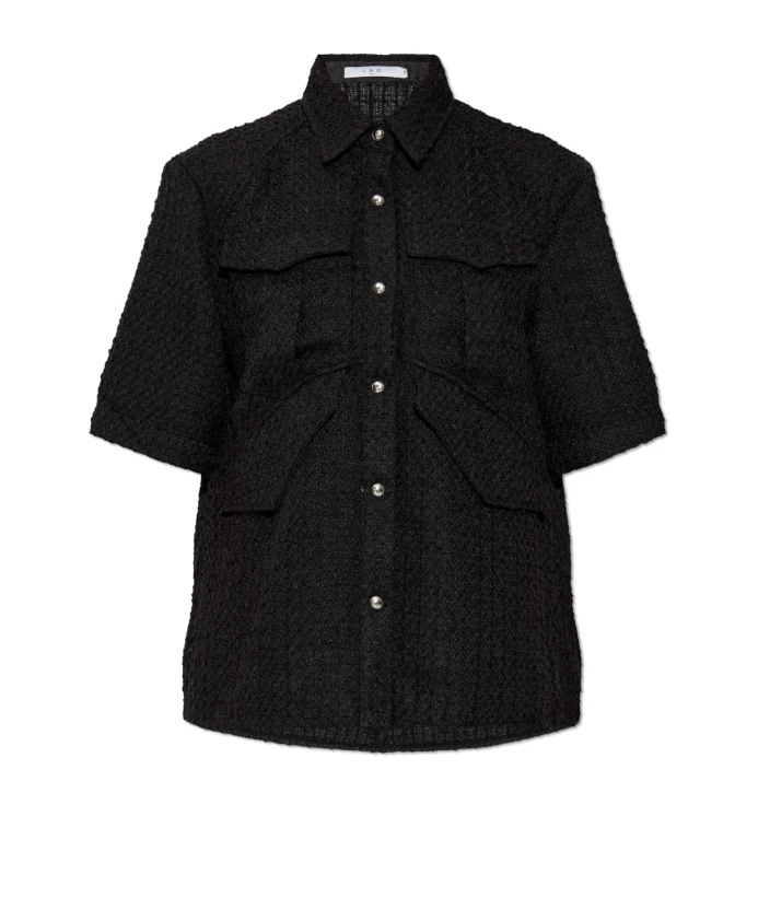 Откройте для себя рубашку Sarina от IRO - изысканный предмет одежды, изготовленный из фактурной ткани, напоминающей твид. Эта рубашка сочетает в себе элегантный стиль и комфорт, имеет классический воротник и свободный, слегка оверсайз крой. Ключевые особенности: Черный | Полиэстер | Функциональные накладные карманы | Классический воротник | Короткие рукава | Серебряные пуговицы | Размеры и крой: Свободный, слегка оверсайз крой | Состав и уход: 100% полиэстер | Машинная стирка в холодной воде, сушка в барабане при низкой температуре.