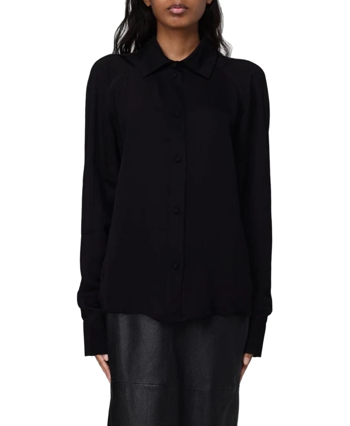 Рубашка Armani Exchange из атласной вискозы изготовлена из легкой, струящейся вискозы, создающей элегантный силуэт и облегчающей многослойность. Ее лаконичный минималистичный дизайн и застежка на пуговицах делают ее универсальным выбором как для офисных, так и для вечерних образов. Основные характеристики: Черный | Вискоза | Легкая ткань | Застежка на пуговицах | Манжеты на одной пуговице | Классический воротник | Длинные рукава | Минималистичный силуэт | Размеры и посадка: Свободный крой | Струящаяся ткань | Состав и уход: Вискоза