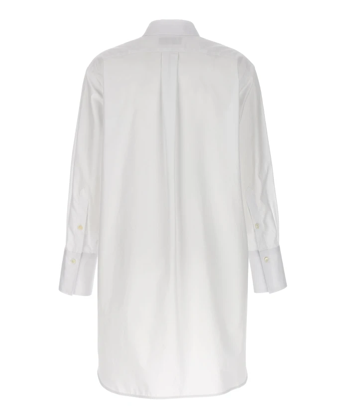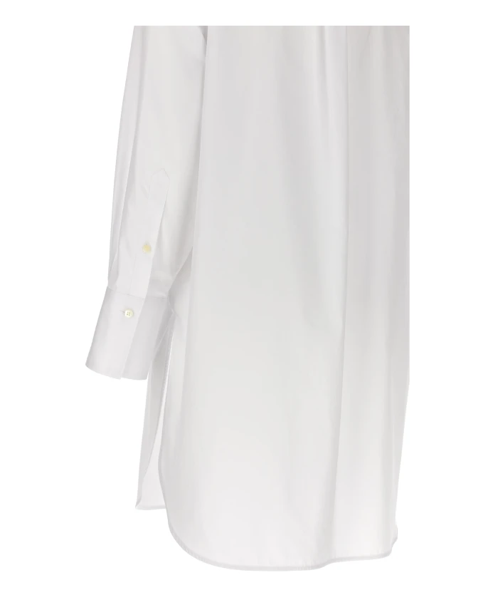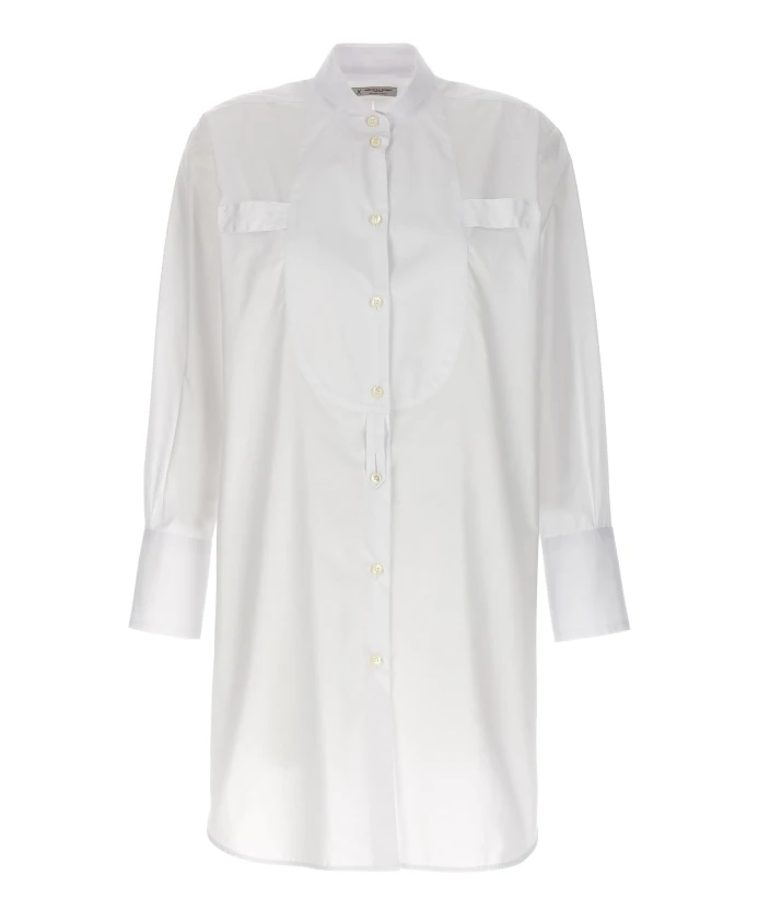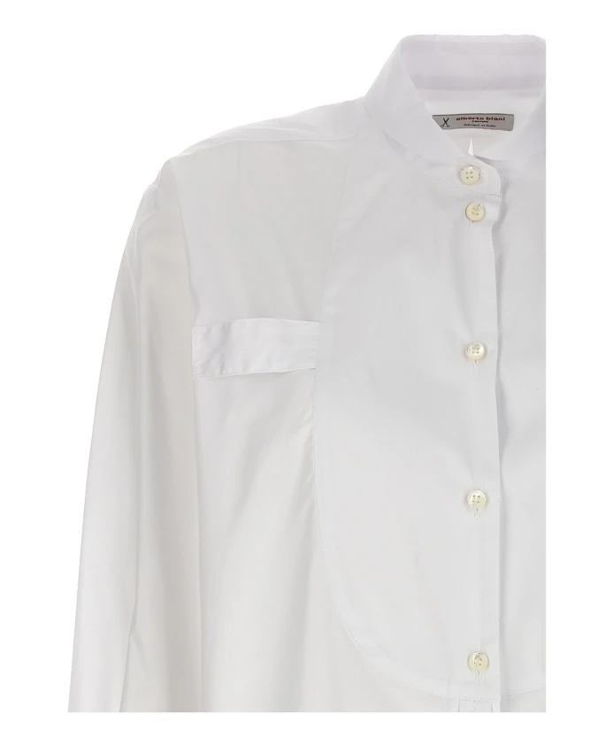 Рубашка-смокинг Alberto Biani - длинная хлопковая рубашка с планкой в стиле смокинга. Идеально подходит для элегантных дневных образов или для повседневных нарядов в стиле smart-casual. Она сочетает в себе классический крой рубашки с приталенной передней деталью. Ключевые особенности: Белый | Хлопок | Застежка на пуговицы | Длинные рукава с манжетами | Планка в стиле смокинга | Удлиненный силуэт | Воротник | Планка на пуговицах спереди | Размеры и посадка: Стандартный крой | Состав и уход: 100% хлопок