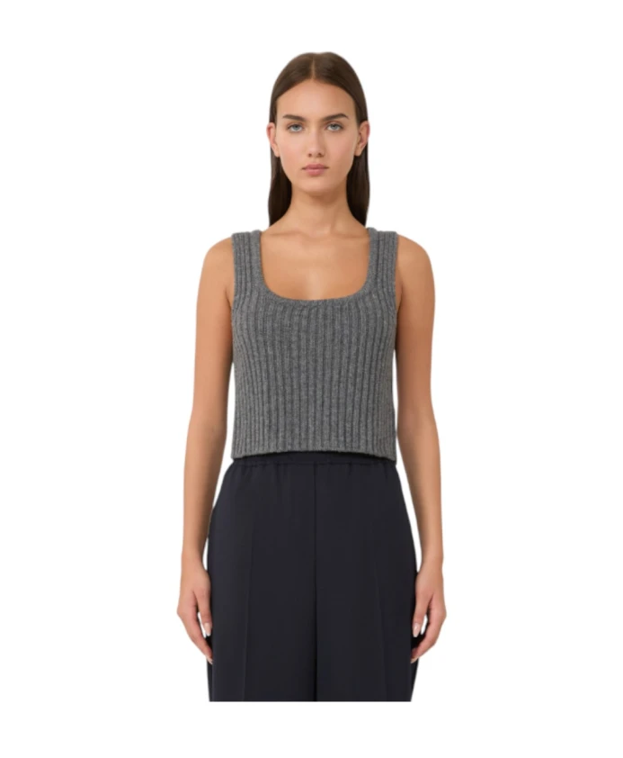 Укороченный ребристый топ Weekend Max Mara из чистой шерсти с квадратным вырезом. Идеально подходит для многослойных образов или ношения отдельно. Ключевые особенности: Серый | Угольно-серый | Шерсть | Подходит для многослойных образов | Можно носить отдельно | Универсальный стиль | Квадратный вырез | Широкие бретели | Ребристая вязка | Трубчатые края | Укороченный низ | Размеры и посадка: Стандартный крой | Укороченная длина | Состав ткани и уход: 100% шерсть | Ручная стирка или химчистка.