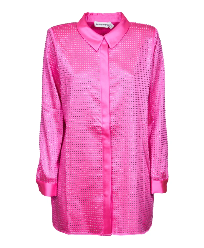 Розовая рубашка-сарафан Self Portrait с металлическим блеском - это шикарная и современная интерпретация классического дизайна. Благодаря своей отличительной особенности - сплошной кристальной отделке - эта рубашка идеально подходит для того, чтобы добавить нотку гламура любому образу. Основные характеристики: Розовый | Атлас | Классический воротник | Длинные рукава с манжетами | Скрытая застежка на пуговицы спереди | Сплошная кристальная отделка | Размер и посадка: Стандартный крой