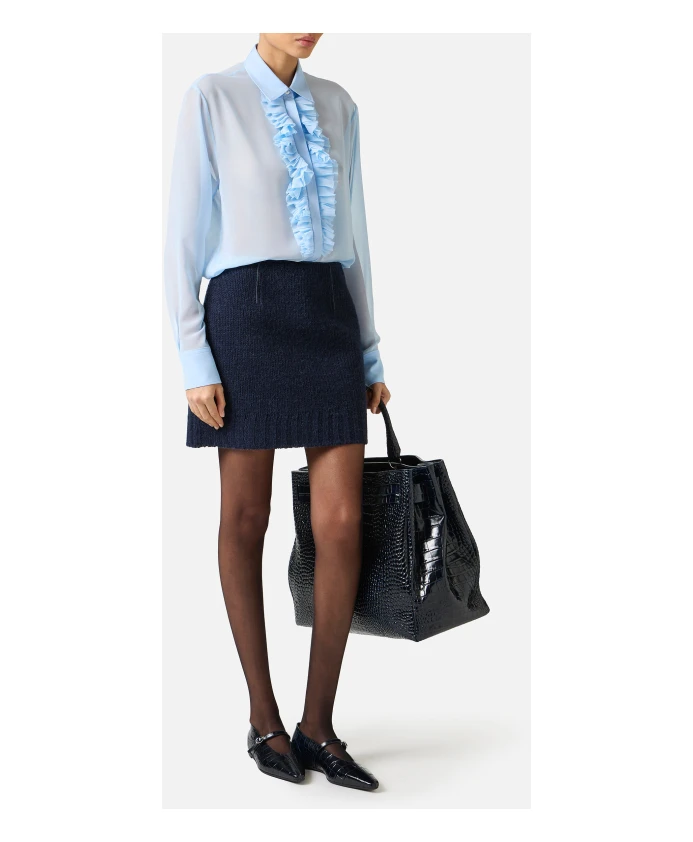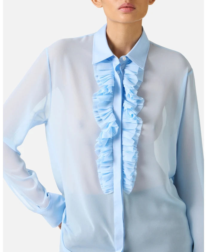 Рубашка Iceberg из шифона стандартного кроя сочетает в себе воздушный, технологичный шифон с двойной оборкой спереди для дополнительного объема и свободы движений, а также детали из поплина в тон для создания изысканного силуэта. Ключевые особенности: Синий | Светло-синий | Технический шифон | Легкий | Двойная оборка спереди | Детали из поплина в тон на манжетах, воротнике и планке с пуговицами спереди | Сбалансированная легкость и структура | Размеры и крой: Стандартный крой