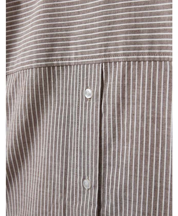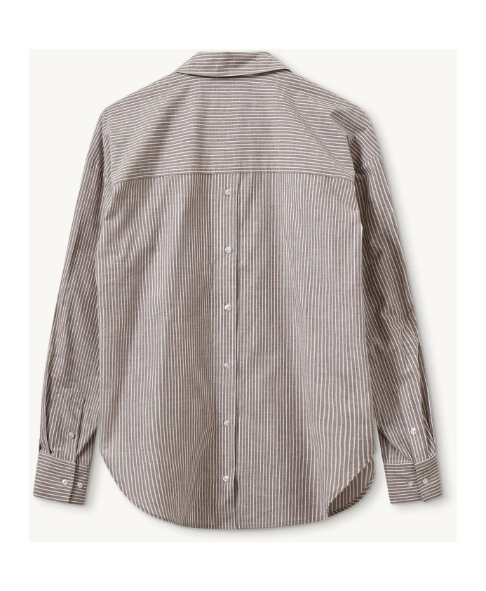 Рубашка Steele Oversized от Designers Remix сочетает в себе элементы мужского стиля, свободный силуэт, едва заметные полоски и стильную пуговицу сзади. Идеально подходит для создания непринужденных многослойных образов на каждый день. Ключевые особенности: Коричневый | Белые полоски | Хлопок | Едва заметные полоски | Стильная пуговица сзади | Силуэт, вдохновленный мужской модой | Размеры и посадка: Свободный крой | Состав материала и уход: 100% хлопок