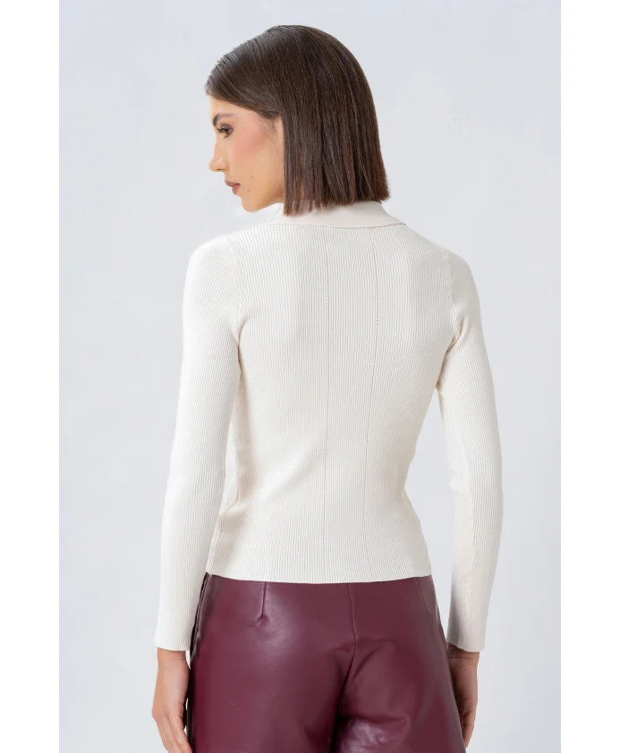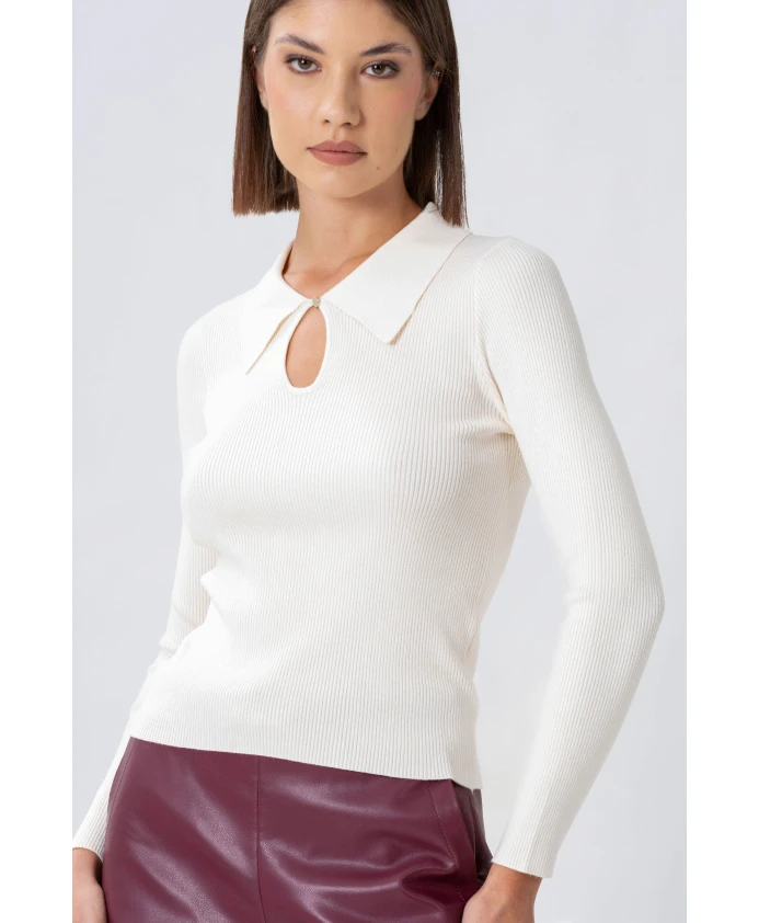 Трикотажный топ с длинными рукавами и воротником от Kocca отличается тонкой ребристой текстурой и небольшим вырезом с декоративными камнями, что делает его элегантным вариантом для повседневной носки. Ключевые особенности: Белый | Бежевый | Ванильный | Вырез с декоративными камнями | Небольшой вырез-«глазок» | Тонкая ребристая текстура | Небольшой мягкий воротник | Длинные рукава | Аккуратная отделка | Небольшой вырез-«глазок»
