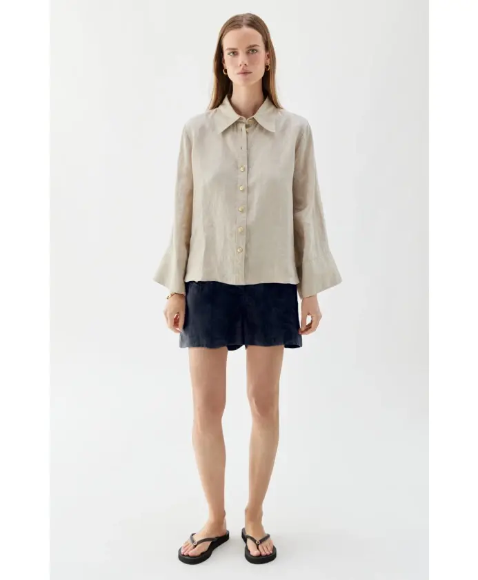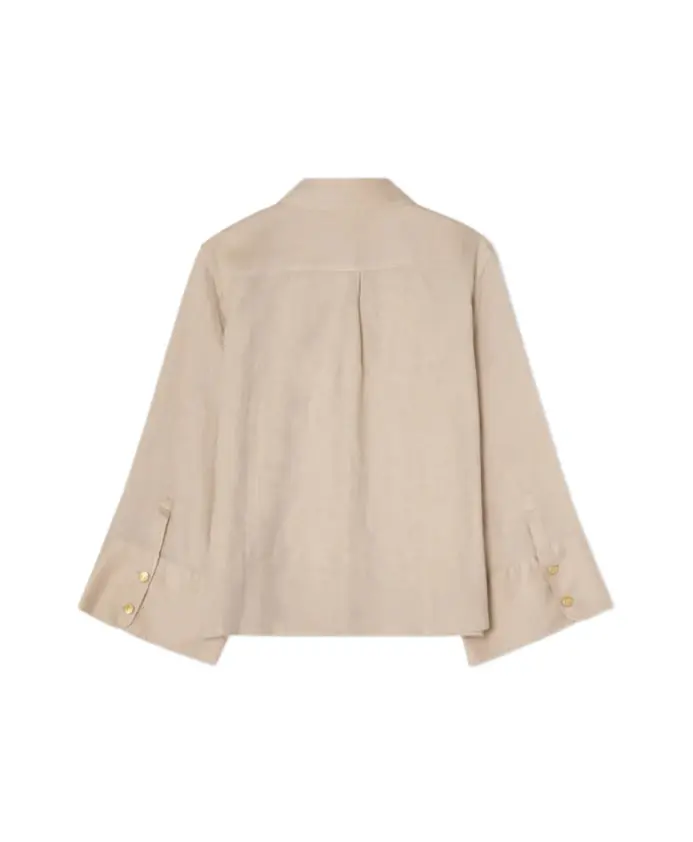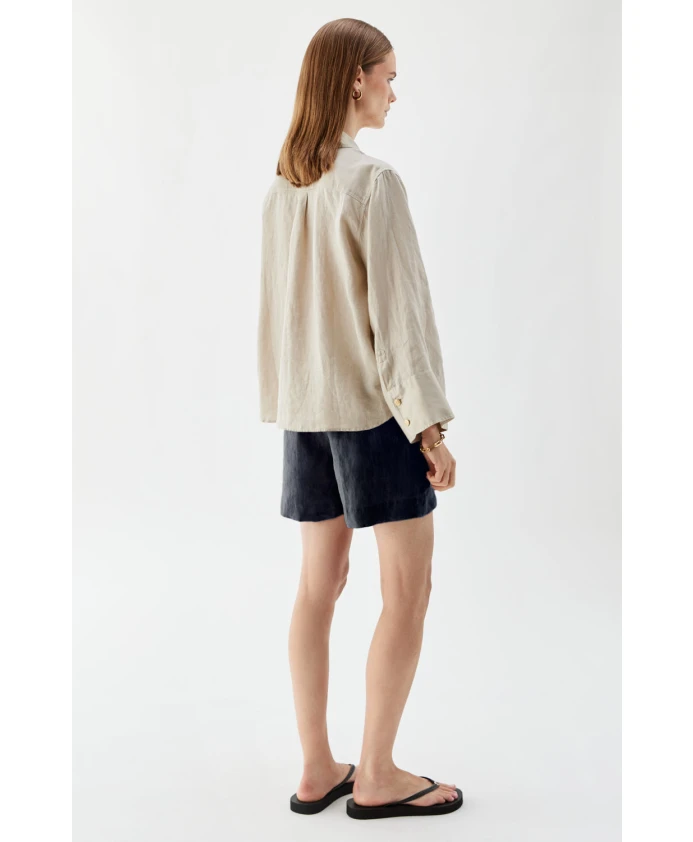 Рубашка Romy имеет широкие рукава три четверти и шесть золотых пуговиц в форме буквы B. Она изготовлена из натурального дышащего льна, приятного на ощупь и легкого. Основная часть/Рукава: 100% лен; Воротник/Манжеты: 97% хлопок, 3% эластан. Ручная/машинная стирка при 30°C. Размер соответствует стандартному, выбирайте свой обычный размер. Рост модели 175 см, размер 38. Сделано в Португалии.