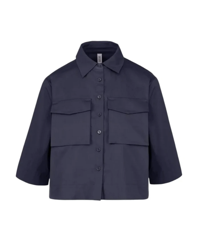 Синяя хлопковая эластичная рубашка с накладными карманами. Bomboogie, синий 16 300₽