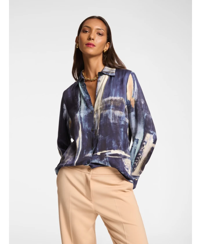 Описание товара: - Рубашка из вискозного твила с принтом - Прямой крой, пуговицы в тон, высокие манжеты на пуговицах - Обязательный элемент гардероба нового сезона. Состав и уход: - Основная ткань: 100% вискоза; вторичная ткань: 97% вискоза, 3% эластан - Не стирать; не сушить в сушильной машине; не отбеливать; только химчистка; не гладить (макс. 110°C)
