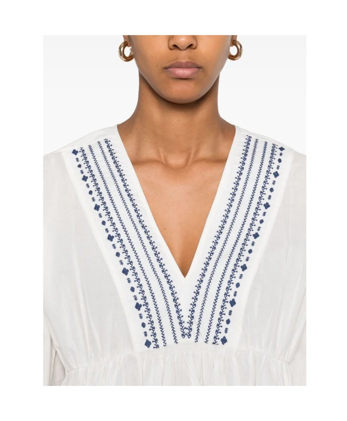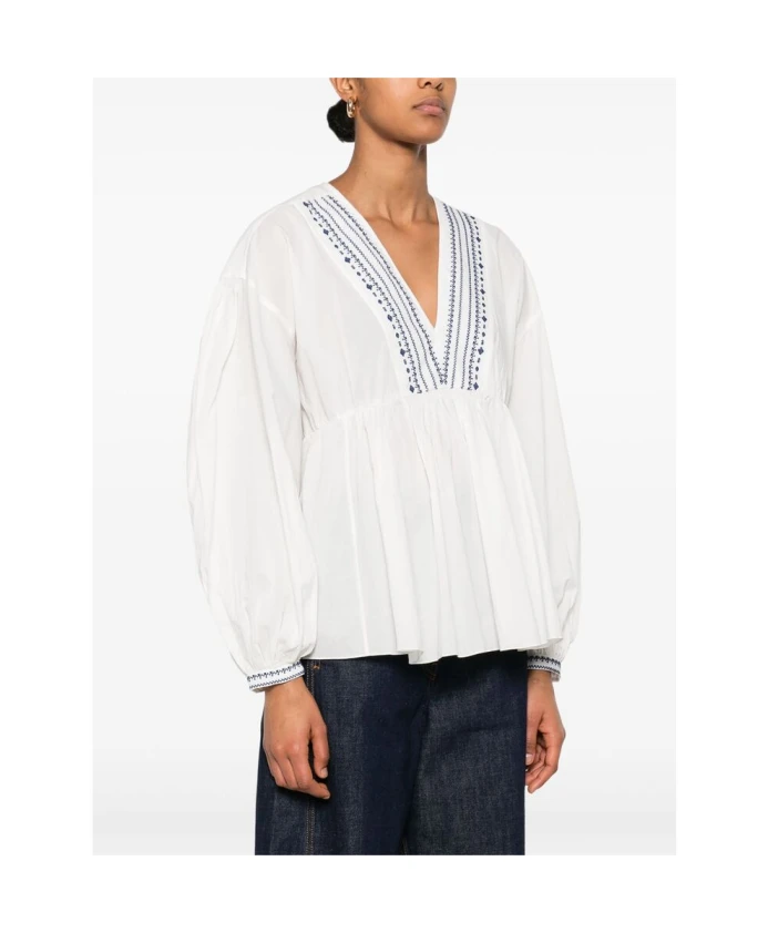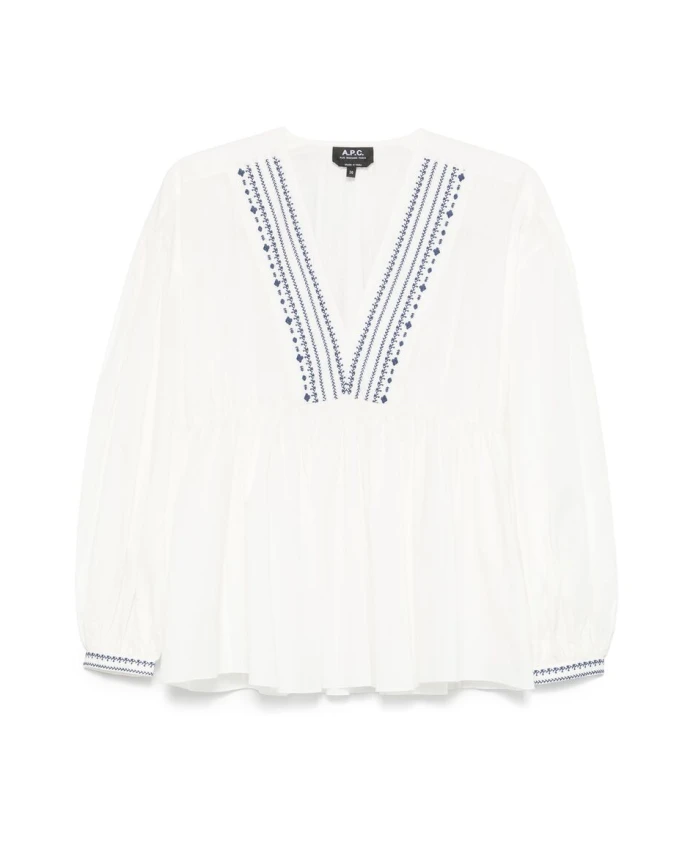 Белая рубашка с V-образным вырезом и вышитым рисунком. A.P.C., белый