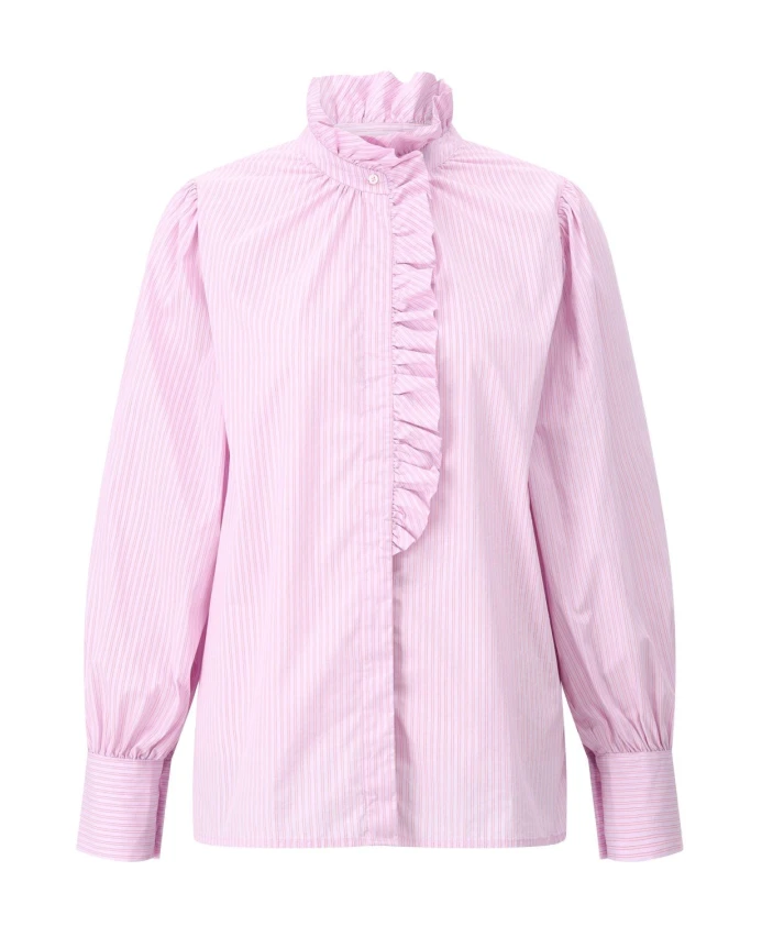 Полосатая блузка-рубашка с оборками Emily Van Den Bergh, розовый