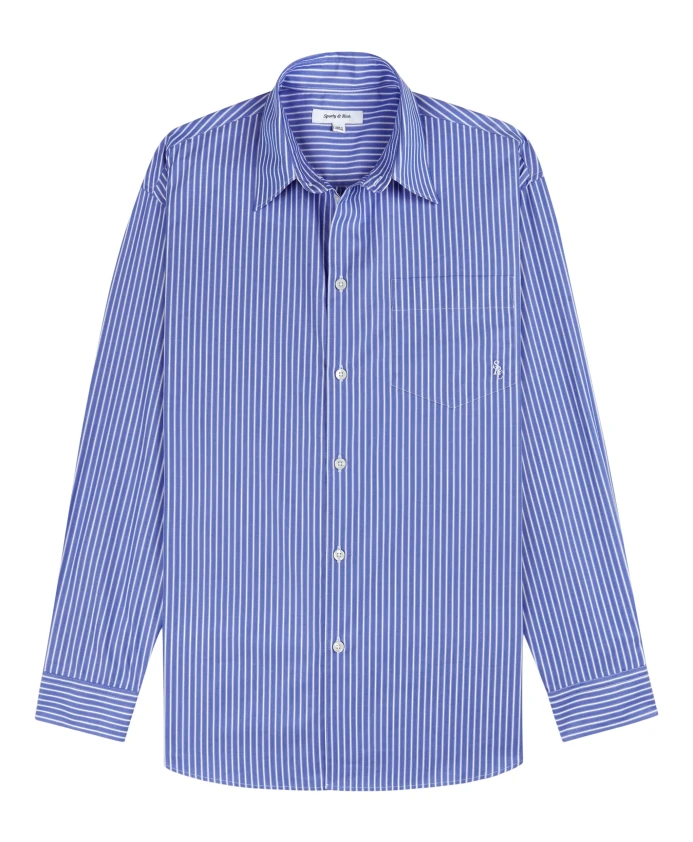 Подчеркните свой стиль с помощью этой синей полосатой рубашки от Sporty & Rich. Изготовленная из плотного хлопкового поплина, она имеет свободный крой и классический дизайн с вышитым логотипом. Идеально подходит для создания изысканного и универсального повседневного образа, это незаменимая вещь в вашем гардеробе.
