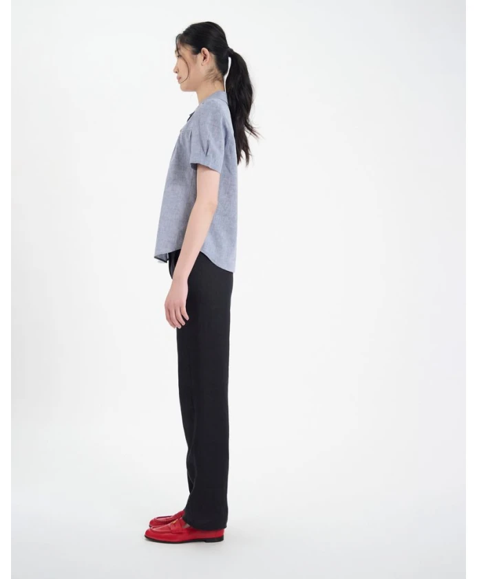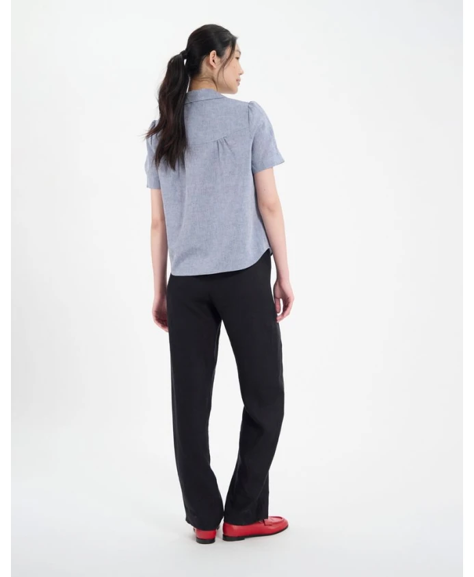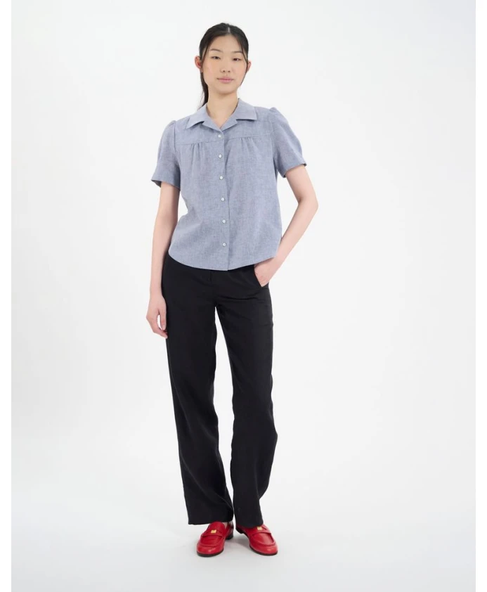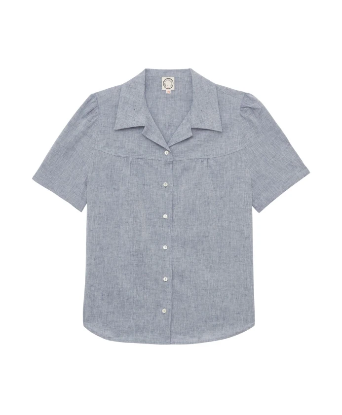 Блузка Constance с короткими рукавами - очевидный выбор для лета, так что вам остается только выбрать свою. Эта модель выполнена из льна и хлопка. Рубашка Ortiz: свободный крой, воротник-стойка с центральным разрезом, бахрома в разрезе, длинные рукава, боковые разрезы. Разработана в Париже, произведена в Европе.