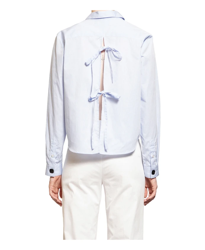 Обновите свой гардероб с помощью этой пыльно-голубой рубашки из хлопкового поплина от The Garment. Модель имеет классический воротник, застежку на пуговицы, вышивку с монограммой спереди, свободные плечи, длинные рукава с манжетами на пуговицах, разрез сзади на завязках и укороченный низ для свободного кроя.