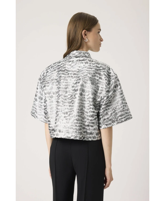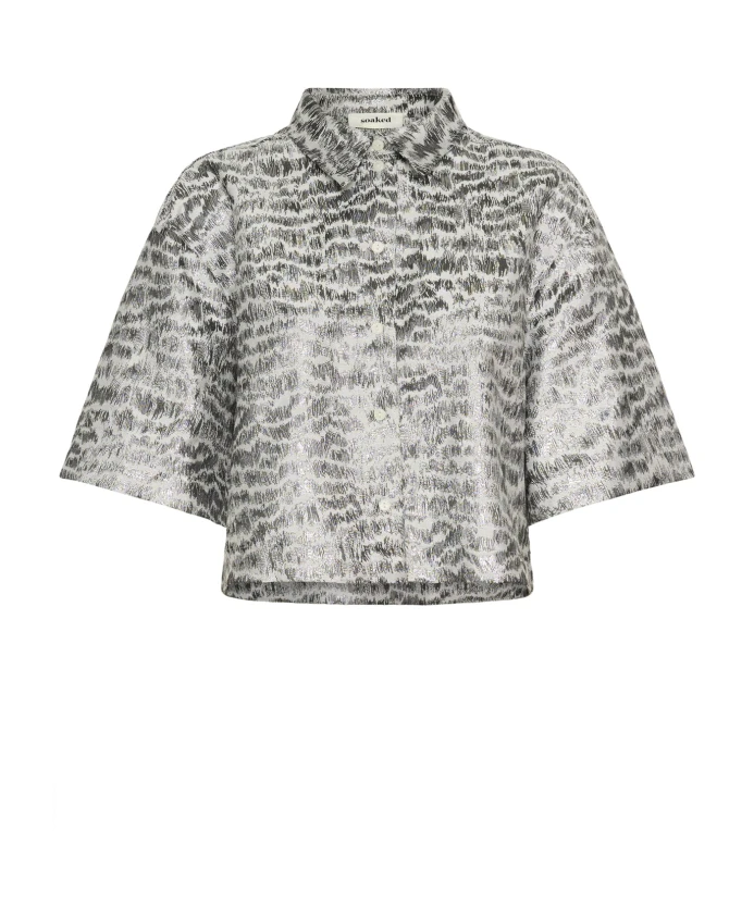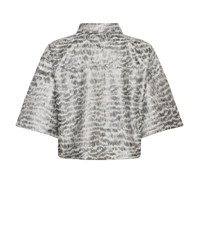 Рубашка Soaked in Luxury Animal Jacquard выполнена из жаккардовой ткани с серебристым рисунком, придающим изделию тонкую текстуру и сдержанный блеск. Она создана для создания изысканных образов как днем, так и вечером. Ключевые особенности: Серый | Серебристый | Жаккардовый рисунок | Серебристая отделка