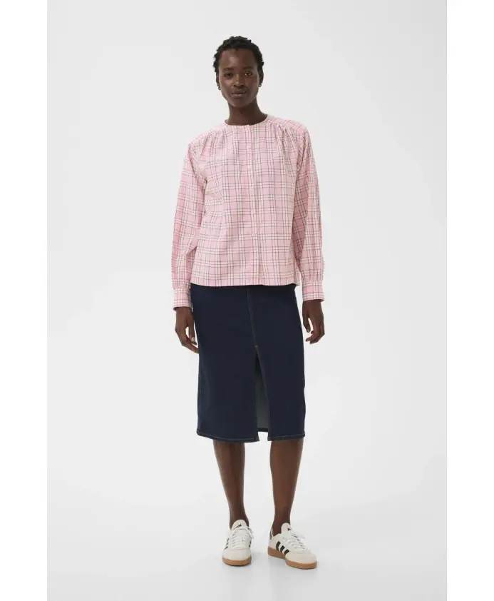 Рубашка в клетку из второй части коллекции отличается ярким розовым клетчатым узором и предназначена для универсального повседневного ношения. Ее можно носить как в многослойных образах, так и отдельно, создавая стиль smart-casual. Ключевые особенности: Многоцветная | Розовая клетка | Клетчатый узор