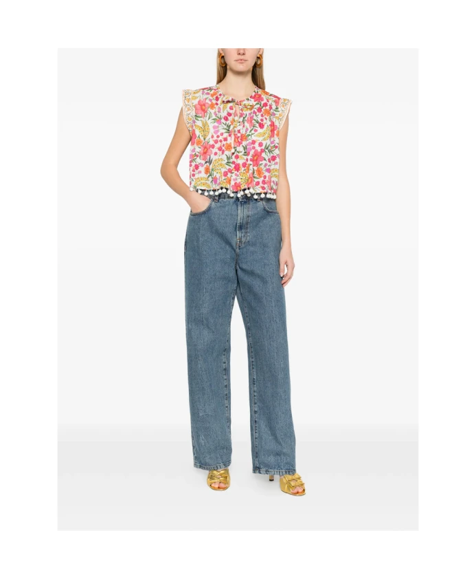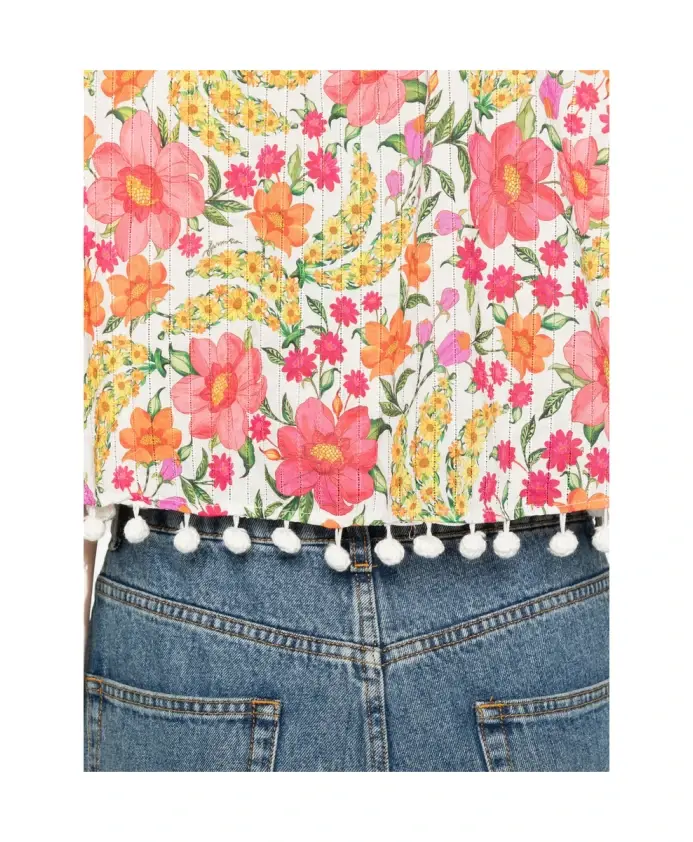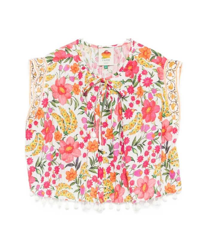 Рубашка FARM Rio выполнена из ткани кремового цвета с цветочным принтом, помпонами и поясом, что делает ее удобной для создания стильных образов в теплую погоду и многослойности. Ключевые особенности: Разноцветная | Белый | Розовый | Пояс | Без рукавов | Цветочный принт | Помпоны