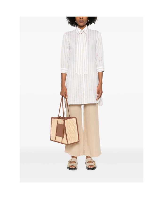 Обновите свой гардероб с помощью этой светло-бежевой рубашки Mazzarelli. Благодаря потайной застежке на пуговицах спереди, манжетам на пуговицах, двум боковым карманам и боковым разрезам, эта рубашка станет универсальным и стильным выбором для женщин.