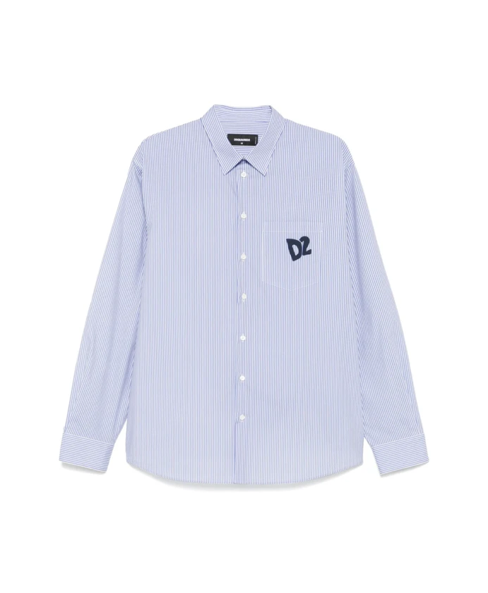 Синяя рубашка на пуговицах, классический стиль. Dsquared2, синий