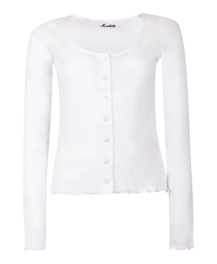 Подчеркните свой стиль с помощью этого универсального женского кардигана ROTATE Birger Christensen. Простой дизайн, вышитый логотип на спине и пуговицы спереди позволяют создавать различные варианты стилизации.