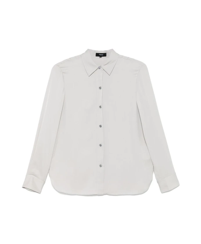 Обновите свой гардероб с помощью этой светло-серой рубашки Theory. Рубашка с застежкой на пуговицы, манжетами на пуговицах, классическим воротником и складками - это вневременная вещь для современной женщины.