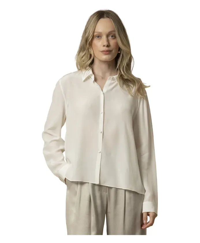 Просто, но стильно: рубашка с длинными рукавами из капсульной коллекции Pure Verve, небольшой воротник, центральные пуговицы в тон, завязывающиеся манжеты. Рост модели 175 см, размер S/42.
