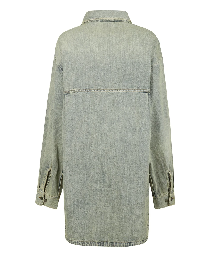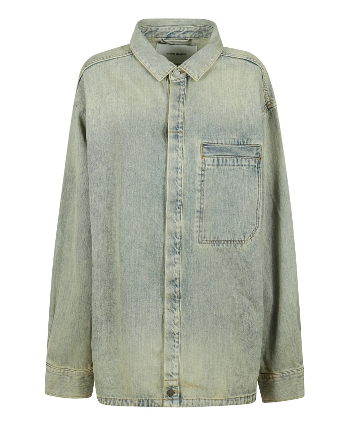 Джинсовая рубашка от ENTIRE STUDIOS. Свободный крой, длинные рукава, прямой низ. Имеет потайную застежку на пуговицах и большой накладной карман на груди.