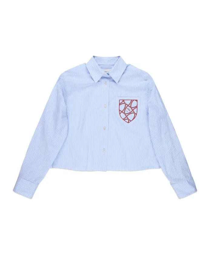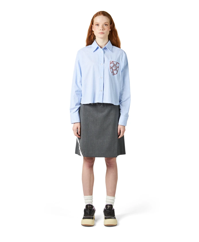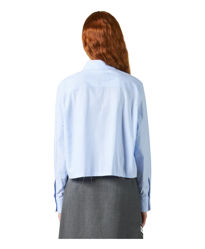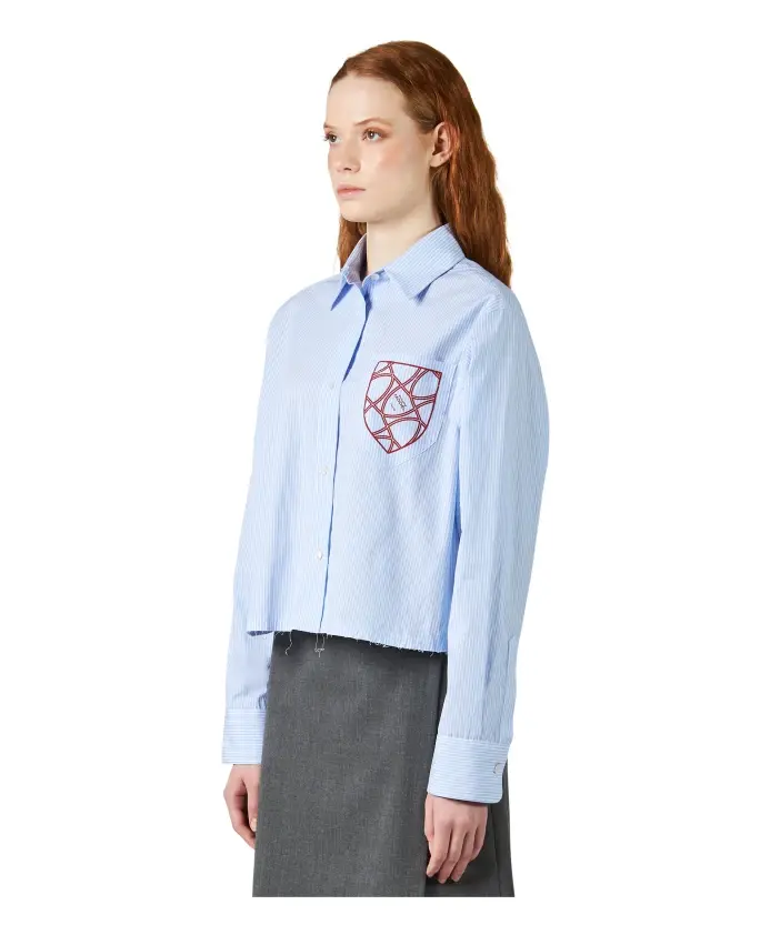 Укороченная блузка из полосатой поплиновой ткани из чистого хлопка. Карман с монограммой в виде щита и необработанный нижний край.