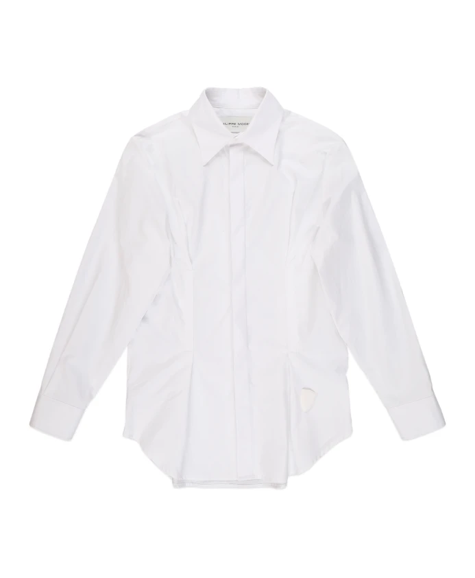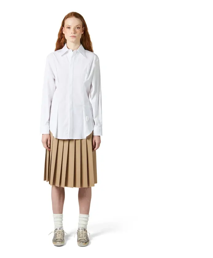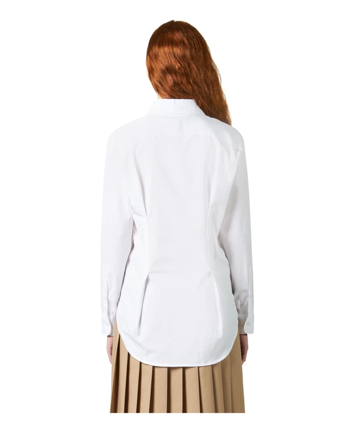 Блузка из чистого хлопкового поплина с глубокими складками и вытачками. Видимые пуговицы и мягкая нашивка слева.