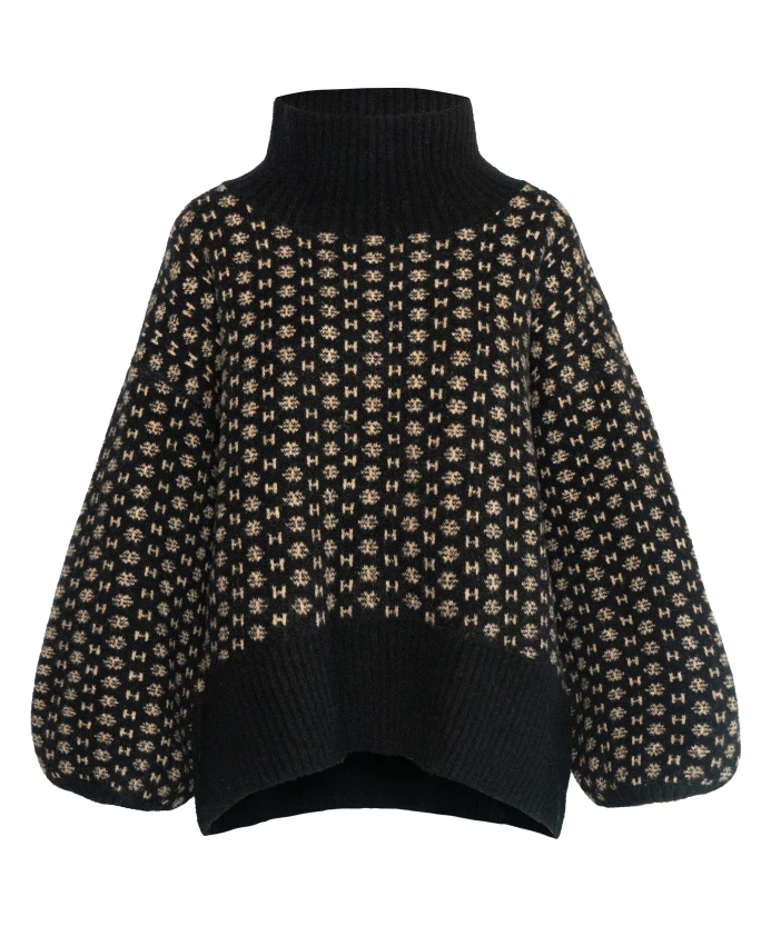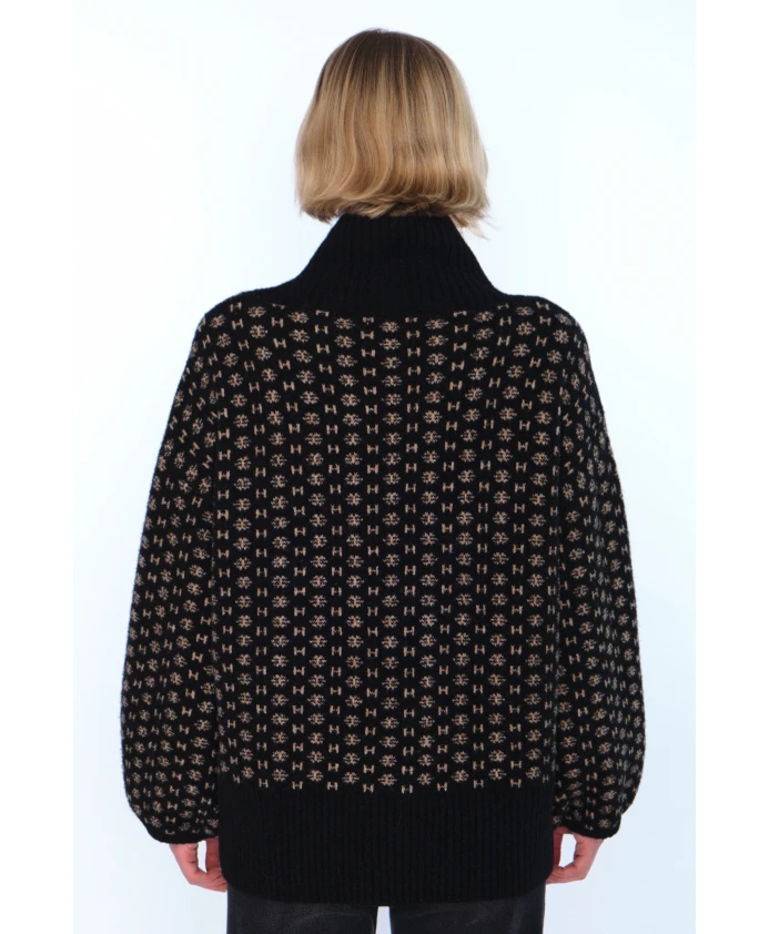 Свитер H‰ST Logo - это вязаный пуловер с высоким воротником, отличающийся эффектным логотипом H по всей поверхности. Укороченная передняя часть и удлиненная спинка создают современный силуэт, идеально подходящий для многослойных образов. Ключевые особенности: Черный | Цвет | Шерсть | Высокий воротник | Узор с логотипом H по всей поверхности | Укороченная передняя часть, удлиненная спинка | Свободный силуэт | Спущенные плечи | Объемные рукава | Ребристый низ | Размеры и посадка: Размер 1 - Длина спинки: 56 см, Длина передней части: 46 см, Длина рукава: 61 см, Ширина: 60 см | Размер 2 - Длина спинки: 66 см, Длина передней части: 56 см, Длина рукава: 65 см, Ширина: 70 см | Свободный крой | Спущенные плечи | Укороченная передняя часть, удлиненная спинка (асимметричный низ) | Состав и уход: 30% шерсть | 15% альпака | 30% акрил | 22% нейлон | 3% эластан | Ручная или машинная стирка в режиме для шерсти. Не гладить.