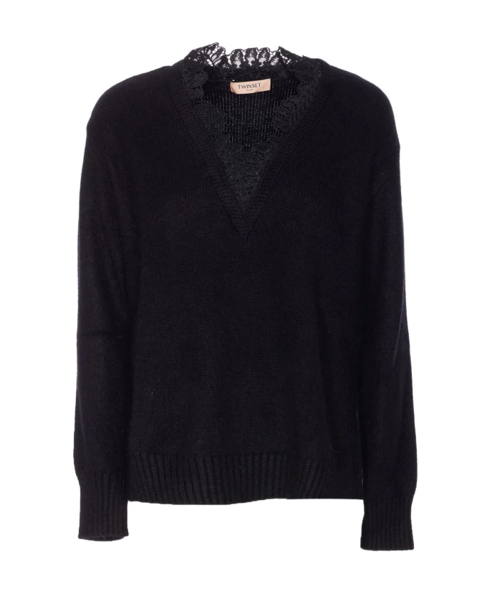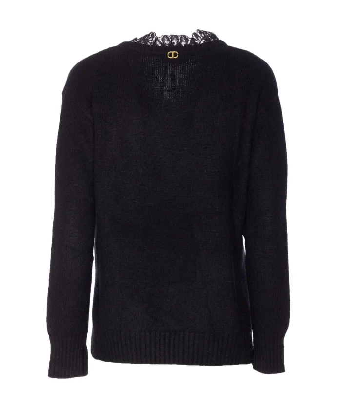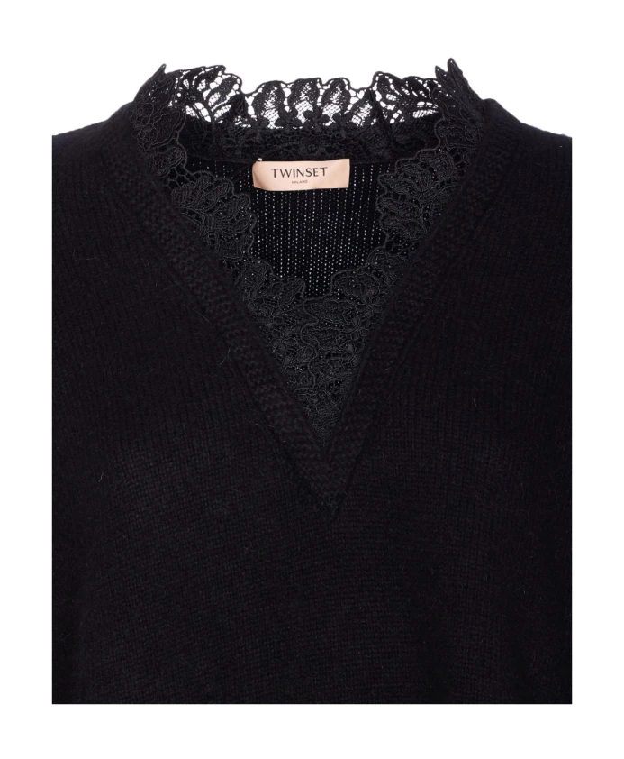 Свитер из смеси ангоры с кружевом Twinset, черный