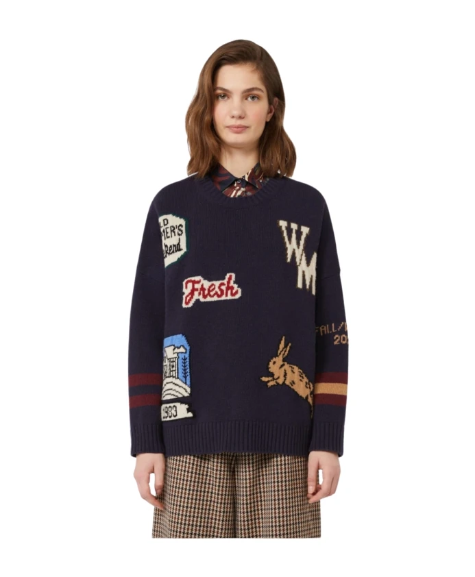 Свитер Max Mara Pavidi с круглым вырезом, отделкой в технике интарсии и свободным, объемным силуэтом. Изготовлен из чистой натуральной шерсти, обеспечивает структурированный стиль и комфортное тепло для повседневной носки. Ключевые особенности: Синий | Темная шерсть | Натуральная шерсть | Круглый вырез | Интарсия на передней части (и рукавах) | Длинные рукава со спущенными плечами | Ребристый воротник, манжеты и нижний край | Размеры и посадка: Длина рукава (измерено от выреза горловины): 70 см | Длина: 63 см | Ширина подмышкой: 66 см | Свободный крой | Состав и уход: 100% натуральная шерсть | Ручная стирка в холодной воде (макс. 40°C); не отбеливать; не сушить в сушильной машине; сушить в горизонтальном положении в тени; гладить при низкой температуре; профессиональная химчистка (перхлорэтилен, щадящий режим).
