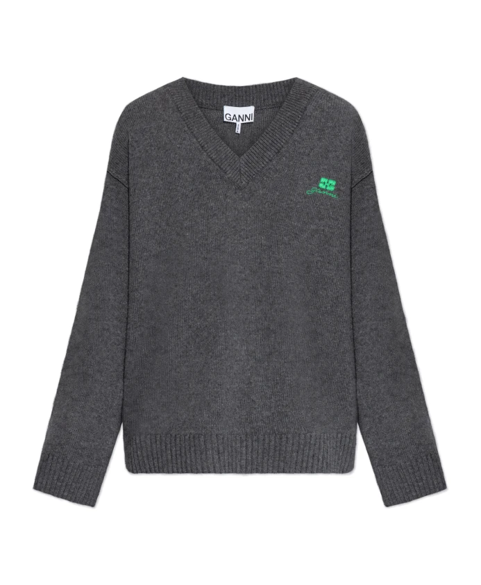 Свитер с логотипом Ganni, серый